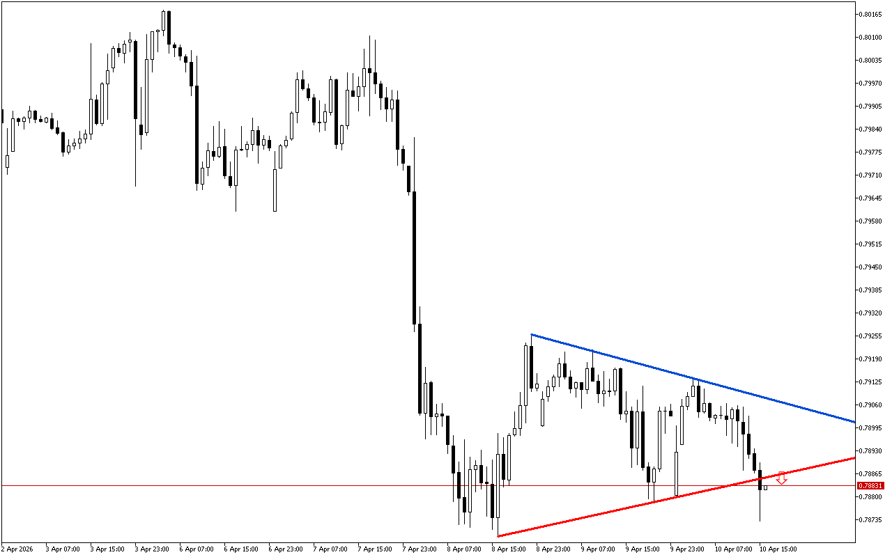 USDCHF H1: 対称三角形の下の境界が下方に破られた